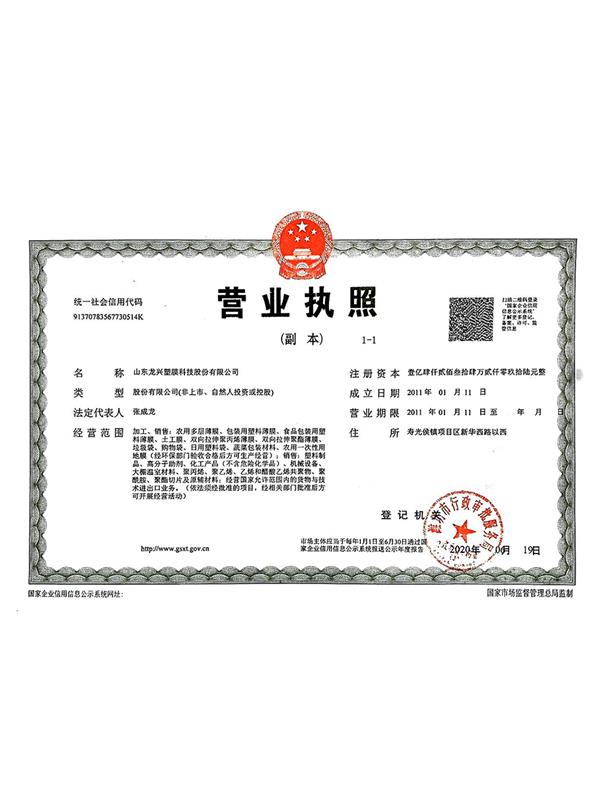 山東龍興塑膜科技股份有限公司前身為山東壽光龍興農(nóng)膜有限公司組建于2011年,2018年10月重組,目前是壽光市國有控股公司、高新技術(shù)企業(yè),是專業(yè)生產(chǎn)高檔農(nóng)用薄膜、工業(yè)用薄膜的企業(yè),是一家以產(chǎn)品制造為主,集科研開發(fā)、產(chǎn)品設(shè)計(jì)、技術(shù)服務(wù)于一體的綜合性企業(yè)。公司現(xiàn)有職工228人,各類工程技術(shù)人員97人,管理人員20余人,注冊資金14234.2096萬元,總資產(chǎn)102314萬元,目前是壽光市國有控股公司、高新技術(shù)企業(yè)。公司是中國塑料加工工業(yè)協(xié)會(huì)農(nóng)膜專業(yè)委員會(huì)會(huì)員單位,中國復(fù)合材料工業(yè)協(xié)會(huì)會(huì)員單位,中國塑料加工工業(yè)協(xié)會(huì)雙向拉伸聚酯薄膜專業(yè)委員會(huì)會(huì)員單位...